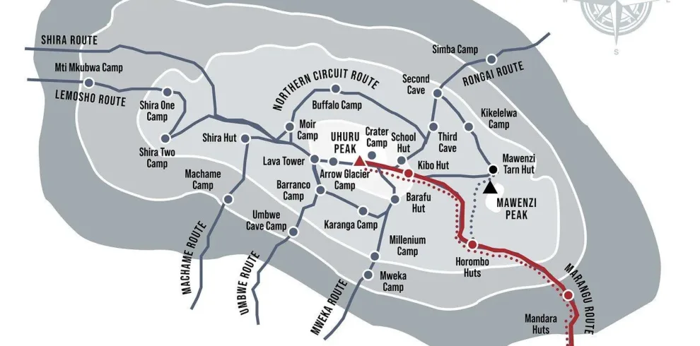 After registration, you will continue with a 4x4 drive up to the Shira Plateau, one of the highest accessible points on Mount Kilimanjaro by vehicle, offering breathtaking views and a unique perspective of the mountain. From here, you will begin your Kilimanjaro hiking experience, walking through the open moorland with clear views of Kibo Peak. Your professional guide will provide detailed explanations about the mountain, ecosystems, and the Kilimanjaro climbing routes, making this a highly educational and enjoyable trek.